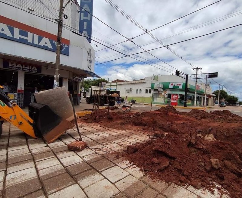 Equipe da Prefeitura de Aquidauana atua na recuperação de ponto de alagamento.