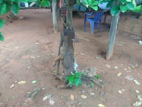 Idoso pendura sua cachorra pelo pescoço em árvore e a mata com machadadas