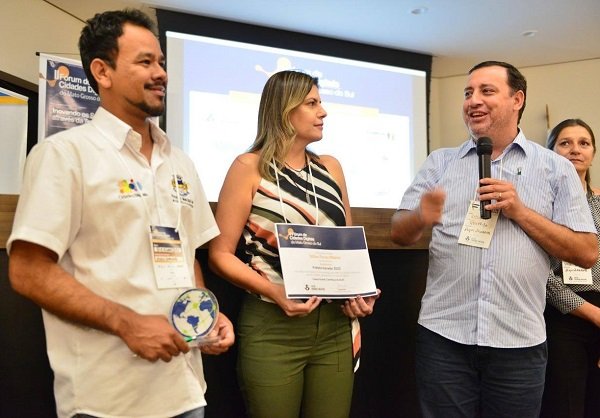 A cerimônia de premiação aconteceu no final da tarde de hoje, 05, na Assomasul, em Campo Grande. O prefeito Odilon Ribeiro foi receber o prêmio junto com a vice-prefeita Selma Suleiman, a primeira-dama Maria Eliza e o coordenador do projeto, o servidor da Prefeitura de Aquidauana Reginaldo Souza da Silva, que fez uma apresentação técnica na cerimônia.