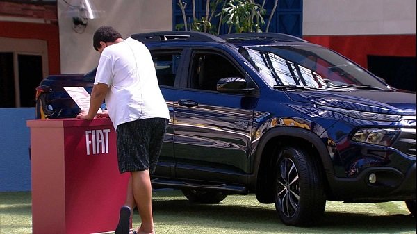 Babu é acordado pela música que ecoa na casa do BBB20 e, após lavar o rosto, caminha para a área externa, onde vê um carro no jardim. O brother chega perto do automóvel e analisa o veículo.