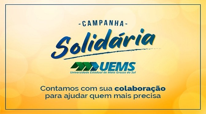 A Universidade Estadual de Mato Grosso do Sul (UEMS) irá promover em suas 15 unidades universitárias uma campanha institucional com foco na arrecadação de donativos e de recrutamento de voluntários para auxiliar a população mais vulnerável no Estado, na vigência da pandemia do novo coronavírus (Covid-19). Trata-se de uma ação conjunta entre a reitoria e as gerências das 15 Unidades Universitárias.