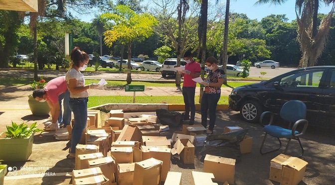 Para o trabalho, servidores da Coordenadoria de Gestão Documental utilizaram equipamentos de segurança. A utilização de máscaras e luvas visa garantir a integridade da saúde dos servidores que ao desempenhar o trabalho, ficam expostos a documentos guardados por muito tempo.