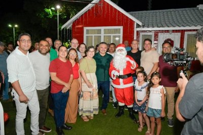 Chegada do Papai Noel encanta famílias na Praça dos Estudantes em Aquidauana