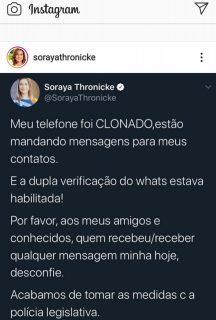 A senadora de Mato Grosso do Sul Soraya Thronicke (PSL) informou nesta sexta-feira (24) que teve o celular clonado. Pessoas estariam enviando mensagens que não seriam de sua autoria da sua conta de WhatsApp.