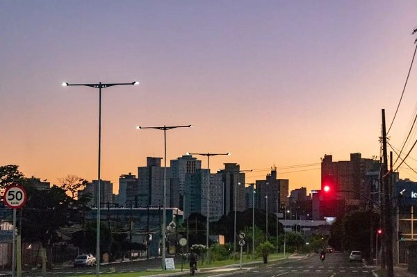 Dia amanhecendo com céu claro na Via Morena (Foto: Henrique Kawaminami)