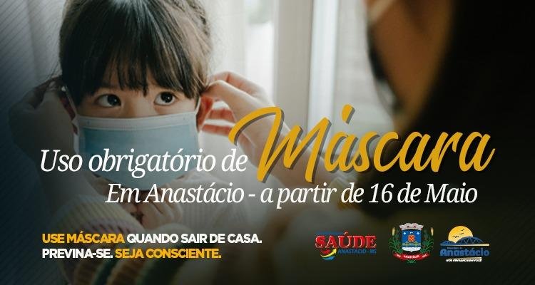 Art. 1º Fica determinada a obrigatoriedade da utilização de máscaras de proteção facial, a partir de 16 de maio de 2020, em todos os espaços públicos, vias públicas, equipamentos de transporte público coletivo e estabelecimentos comerciais, industriais e de serviços no âmbito do Município de Anastácio, sem prejuízo das recomendações de isolamento social e daquelas expedidas pelas autoridades sanitárias.