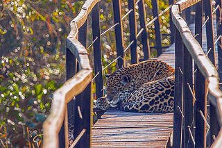 O guia de turismo Edir Alves saiu cedo para vistoriar as trilhas de madeira da Fazenda San Francisco, em Miranda (MS), na região do Pantanal. Teve que mudar os planos ao deparar-se com a onça-pintada Mariposa, de cerca de 120 quilos, deitada no meio da ponte.