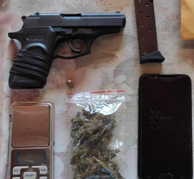 O homem foi encontrado em uma casa no município de Aquidauana, onde foram encontrados uma pistola calibre .380 municiada e substância análoga à maconha.