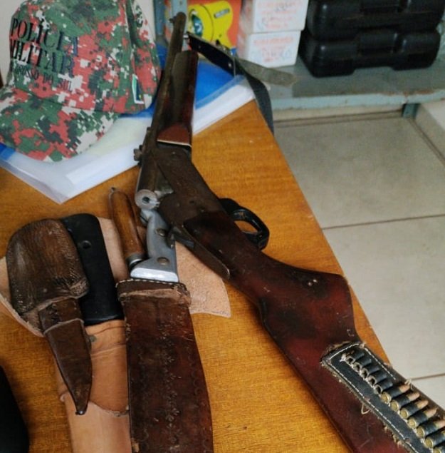 PMA surpreende caçadores, com armadilha e ceva, apreende rifle e munições