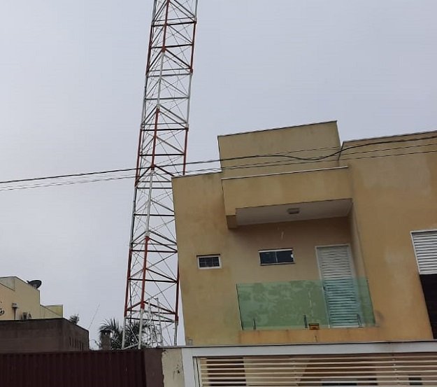 Durante o temporal que assolou Aquidauana na noite de ontem (15) de agosto, aniversário de Aquidauana, a torre da FM Nova Anastácio 103,5 dirigida empresária Cynthia Figueiredo cedeu e acabou sendo escorada pelo imóvel vizinho, o que impediu sua queda.