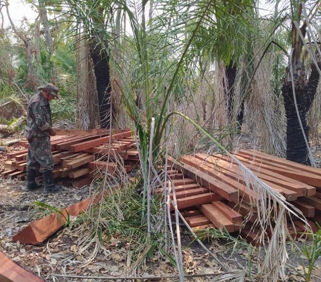 Campo Grande (MS) - Policiais Militares Ambientais de Aquidauana realizaram fiscalização ambiental em uma fazenda localizada a 100 km da cidade ontem (4) e localizaram uma área de exploração ilegal de madeira.
