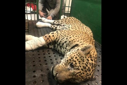 Onça-pintada resgatada no incêndio - Divulgação/Equipe de Bombeiros