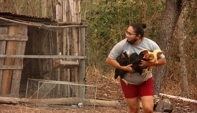 Em meio aos trabalhos para combater às chamas no Pantanal, há também a dedicação para salvar os animais. Nesta segunda-feira (28), uma imagem chamou atenção. Keli Munique Silva, funcionária da RPPN (Reserva Particular do Patrimônio Natural) Eliezer Batista, correu até o galinheiro, que estava prestes a ser atingido pelas chamas e conseguiu salvar três animais.