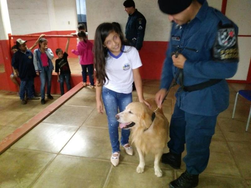 Ontem, (20.03), a equipe do “Canil/Força Tática” do 7º Batalhão de Polícia Militar em Aquidauana (Cabo PM Wellington e Cabo PM Normando), acompanhado do Cão Hunter, da raça Golden Retriever, ministrou uma palestra aos alunos do 1º ao 5º ano da Escola Municipal Antônio Pace – CAI.