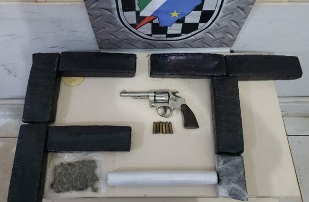 Arma e drogas apreendidas durante a ocorrência. Foto: Enfoque MS