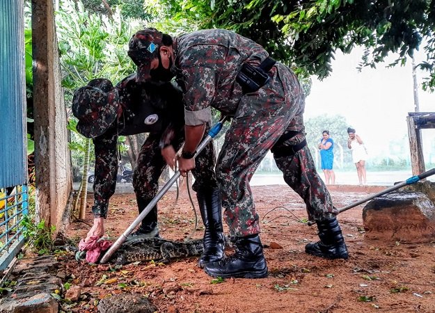 Policiais Militares Ambientais de Aquidauana realizaram a captura de um jacaré no perímetro urbano da cidade. Uma moradora do bairro Serraria acionou a PMA ontem (29) às 16h10, informando que o animal estava transitando pela rua nas proximidades de sua residência.