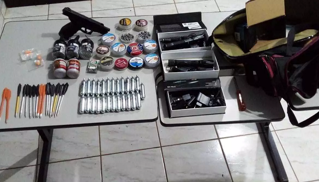 Os adolescentes levaram três armas de ar comprimido, um pistola falso, três canivetes, quatro lanternas, 30 cilindros de gás, uma sacola, 30 munições, seis isqueiros, três facas, cinco bolas e um machado, além de R$ 500,00 em dinheiro. Os ítens haviam sido enterrados aem uma mata.