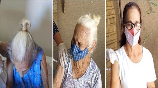 A primeira a ser imunizada foi Francisca Candida de Paula, de 107 anos, seguida pela filha Amélia Candida de Jesus, de 90. Por último, a neta também foi vacinada, já que trabalha como cuidadora de idosos.