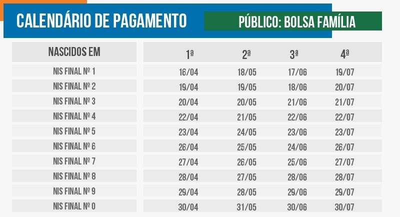 O cronograma de pagamento no Bolsa Família, de acordo com o número de NIS, segue até a próxima sexta-feira (dia 30).