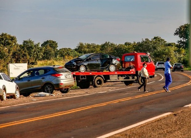 Conforme apurou a reportagem, o HB20 foi atingido pela carreta e bateu na lateral do Fiat Strada, que também estava saindo de uma estrada vicinal para acessar a BR-262, porém do outro lado da rodovia.