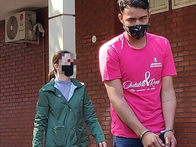 Leo Ribeiro Nascimento volta à delegacia após busca por faca (Foto: Adilson Domingos)