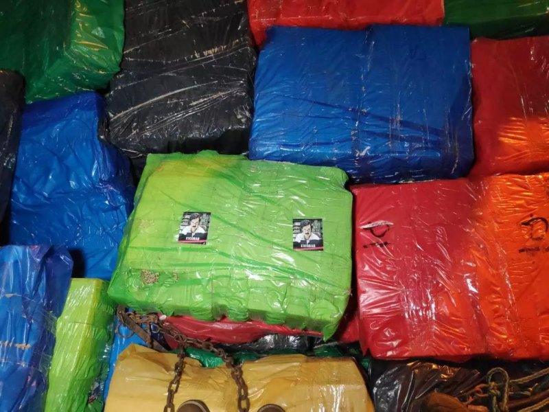 Alguns fardos de maconha estavam identificados com foto do personagem do lendário traficante Pablo Escobar na série El Patrón del Mal, exibida pela Netflix.