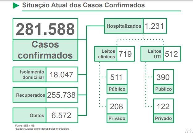 Neste momento 1.231 pessoas estão internadas por COVID-19 em MS, sendo 512 em leitos de UTI – Unidade de Terapia intensiva.