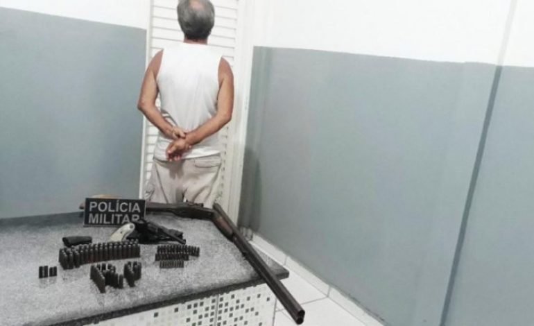 O policiais conseguiram entrar na residência, e depois de buscas, foram encontradas duas armas de fogo, uma espingarda calibre 22 e um revólver calibre 32.