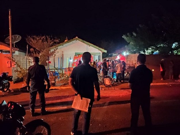 Um leitor do JNE enviou um registro do momento em que a Vigilância Sanitária de Aquidauana junto com a Polícia Militar colocou fim a uma festa no Jardim Aeroporto na noite deste domingo (6). Muita gente aglomerada, convidados sentados até no meio da rua, todos sem máscaras, como se a pandemia tivesse acabado.