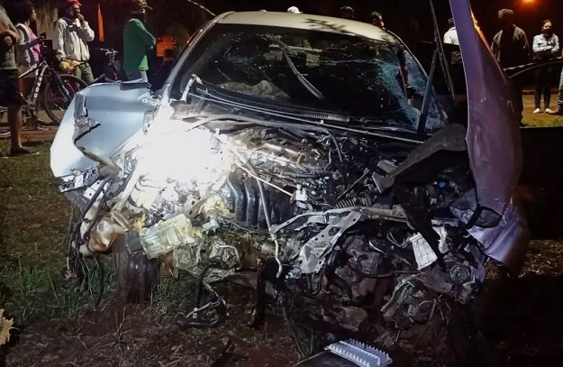 Frente do carro ficou destruída após o acidente, que aconteceu na noite de sábado (Foto: Rio Brilhante em Tempo Real)
