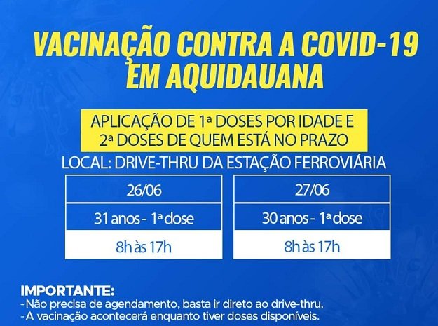 Aquidauana vacina hoje até às 17 horas no Drive Thru da Ferroviária
