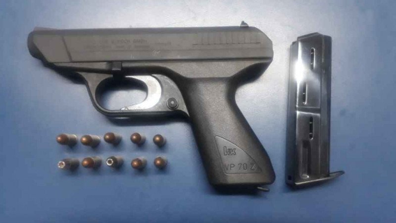 Durante a manobra foi arremessado de dentro do carro um objeto metálico, que a polícia apreendeu descobrindo ser uma pistola, com 10 munições intactas e uma munição na câmera da pistola. O rapaz tentou fugir, mas foi alcançado depois de 50 metros.