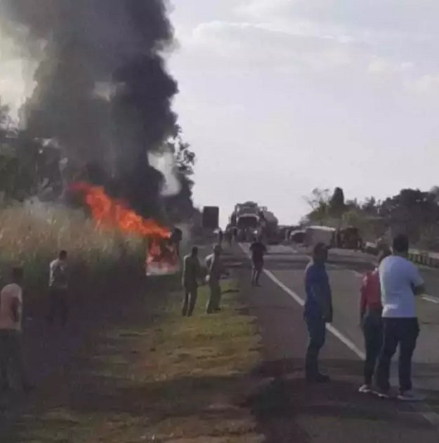 Após a batida, a carreta, do tipo graneleira, pegou fogo. Havia a suspeita que o caminhoneiro ficou preso às ferragens e estava sendo carbonizado. Equipe da CCR MSVias chegou a pedi para o Corpo de Bombeiros um desencarcerador, mas ainda não está confirmado a informação de que o caminhoneiro ficou retido.