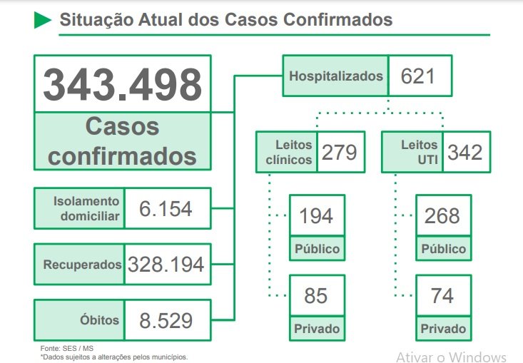 Aquidauana não registrou caso de contágio nas últimas 24 horas, mas aguarda o resultado de exames coletados de 110 pessoas. Anastácio confirmou um caso e aguarda 33 exames.