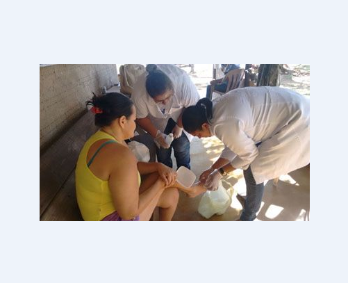 Atualmente, em Aquidauana, o fluxo de atendimento para tratamento de pé diabético e ulceras crônicas chega a ser de 120 pacientes por mês. Por conta da pandemia, esse fluxo reduziu e foi necessário criar um protocolo de atendimento domiciliar com a podóloga, integrando a equipe do NASF (Equipe Multidisciplinar).
