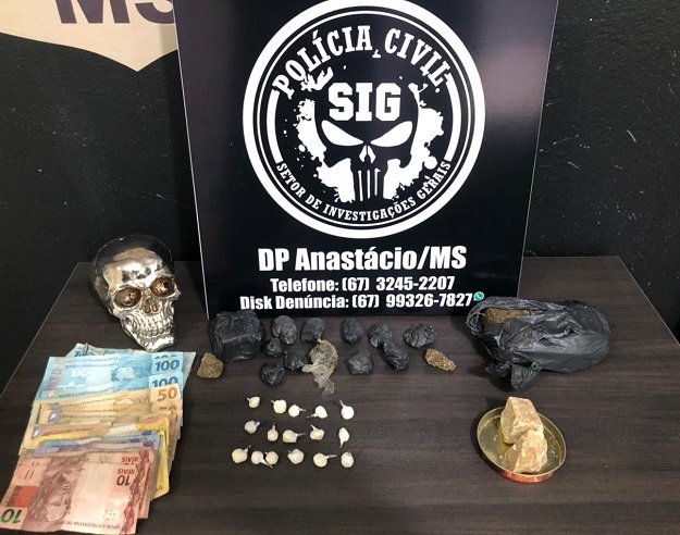 Durante a busca o investigador do SIG de Anastácio localizou embaixo da cama do homem de 23 anos uma porção de 13 gramas de Haxixe, bem como parte do dinheiro encontrado.