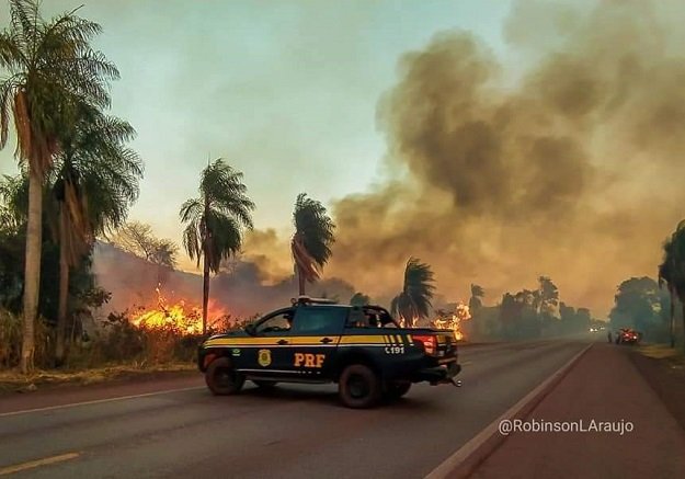 De acordo com os bombeiros, o fogo que começou na reserva, atravessou a BR-158, atingindo também áreas de fazendas da região. A fumaça é tanta que chega às cidades da região. Bombeiros de Bataguassu também trabalham no local.