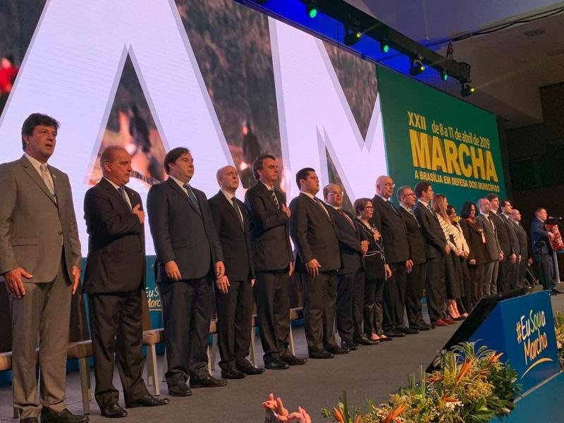 A XXII Marcha a Brasília em Defesa dos Municípios foi aberta na manhã desta terça-feira (9) com presença do presidente Jair Bolsonaro, ministros e dos presidentes da Câmara dos Deputados, Rodrigo Maia (DEM-RJ), e do Senado, Davi Alcolumbre (DEM-AP).