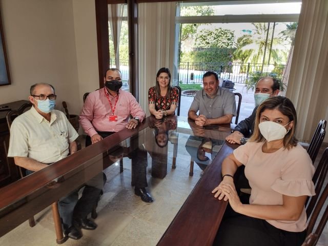 O prefeito Odilon Ribeiro, acompanhado da primeira-dama Maria Eliza e o secretário municipal de Finanças, Ernandes Peixoto estiveram reunidos com os representantes do Santander, onde discutiram a implantação do banco no município de Aquidauana.