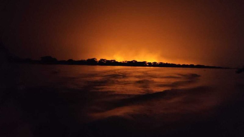 As equipes do Corpo de Bombeiros atuam no combate ao incêndio que atingiu a região do Paraguai-Mirim em Corumbá, a 425 km de Campo Grande. A região oferece dificuldades para os militares, com deslocamento lento e dificuldade para combater as chamas.