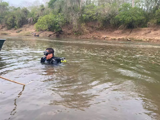 Mergulhadores do Corpo de Bombeiros durante as buscas no Rio Miranda (Foto: Jardim MS News)