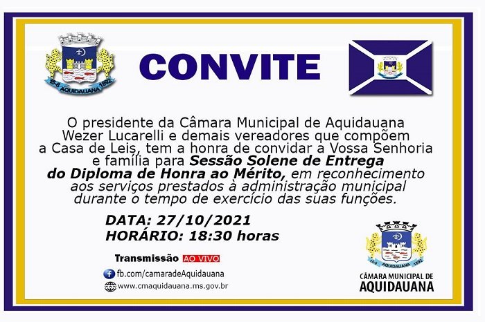 Com base em Lei aprovada pela Câmara Municipal de Aquidauana e sancionada pelo prefeito Odilon Ribeiro (PSDB) o Poder Legislativo vai conceder Diploma de Honra Mérito aos servidores públicos municipais aposentados a partir de 1º de setembro de 2020 pelo Instituto de Previdência dos Servidores Públicos do Município de Aquidauana (AquidauanaPrev).