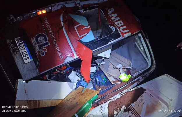Equipe médica ficou ferida após acidente de trânsito na BR-262, região de Ribas do Rio Pardo, a 103 quilômetros de Campo Grande. O motorista perdeu o controle após aquaplanar na pista e a ambulância capotar na noite desta quinta-feira (28).