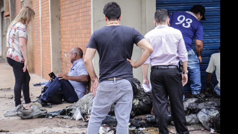 Nas primeiras horas da manhã, pessoas em situação de rua que costumam ficar na região da antiga rodoviária já tinham revirado a pilha de tapeçarias na tentativa de acharem ferro, cobre e outros materiais que podem ser revendidos.
