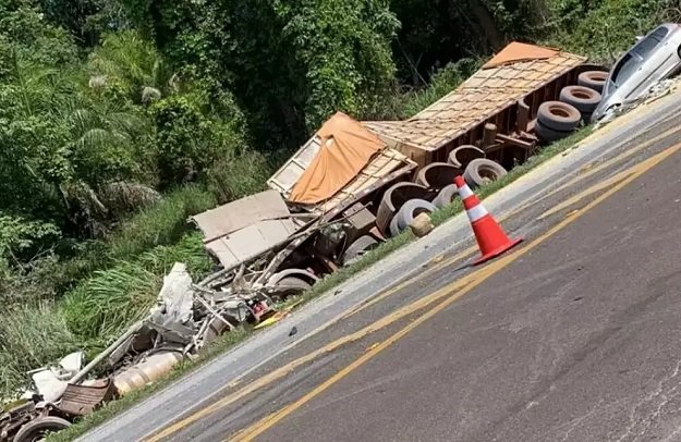 Condutor perde controle, tomba carreta e morre preso às ferragens na BR-163