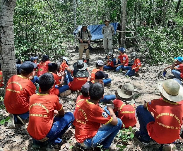 Bombeiros do Amanhã se divertem e aprendem em acampamento no campo de instrução do Exército em Aquidauana.