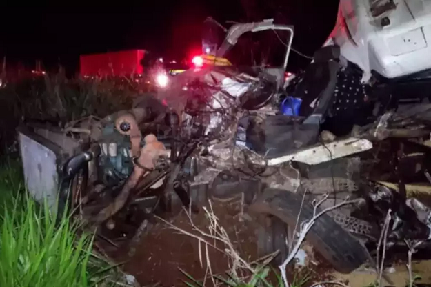Duas carretas se envolveram em acidente na noite desta terça-feira (30), na BR-163, em Bandeirantes, a 70 km de Campo Grande. No vídeo acima, gravado por motorista que passava pelo local, é possível ver parte da destruição em um dos veículos envolvidos.