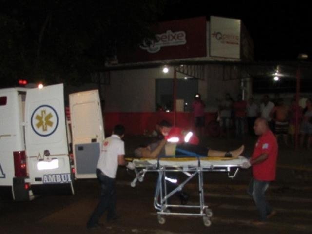 Vítima sendo colocada na ambulância após ser atingido pelos tiros. (Foto: Aislan Nonato)