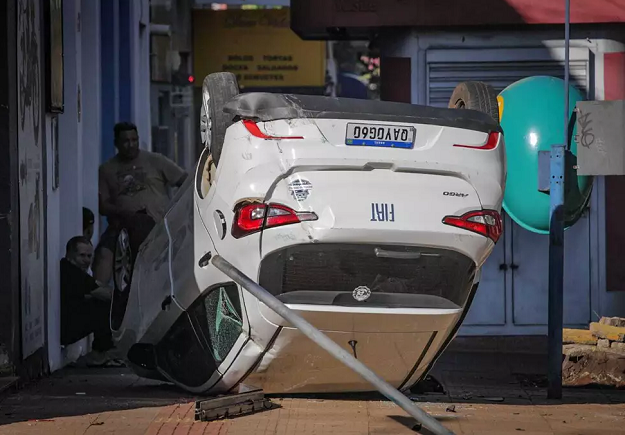 Após colisão, carro capota e atinge morador de rua que dormia em calçada