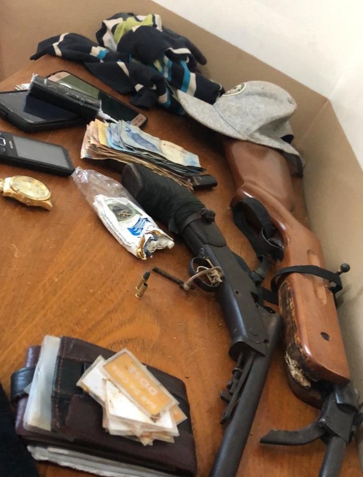 Na casa de Nenem foi encontrado um aparelho celular e uma touca ninja. Com Matias foi localizada uma arma de fogo calibre .36, dois celulares, uma quantia de R$ 524 reais e outros objetos, tudo proveniente do assalto.